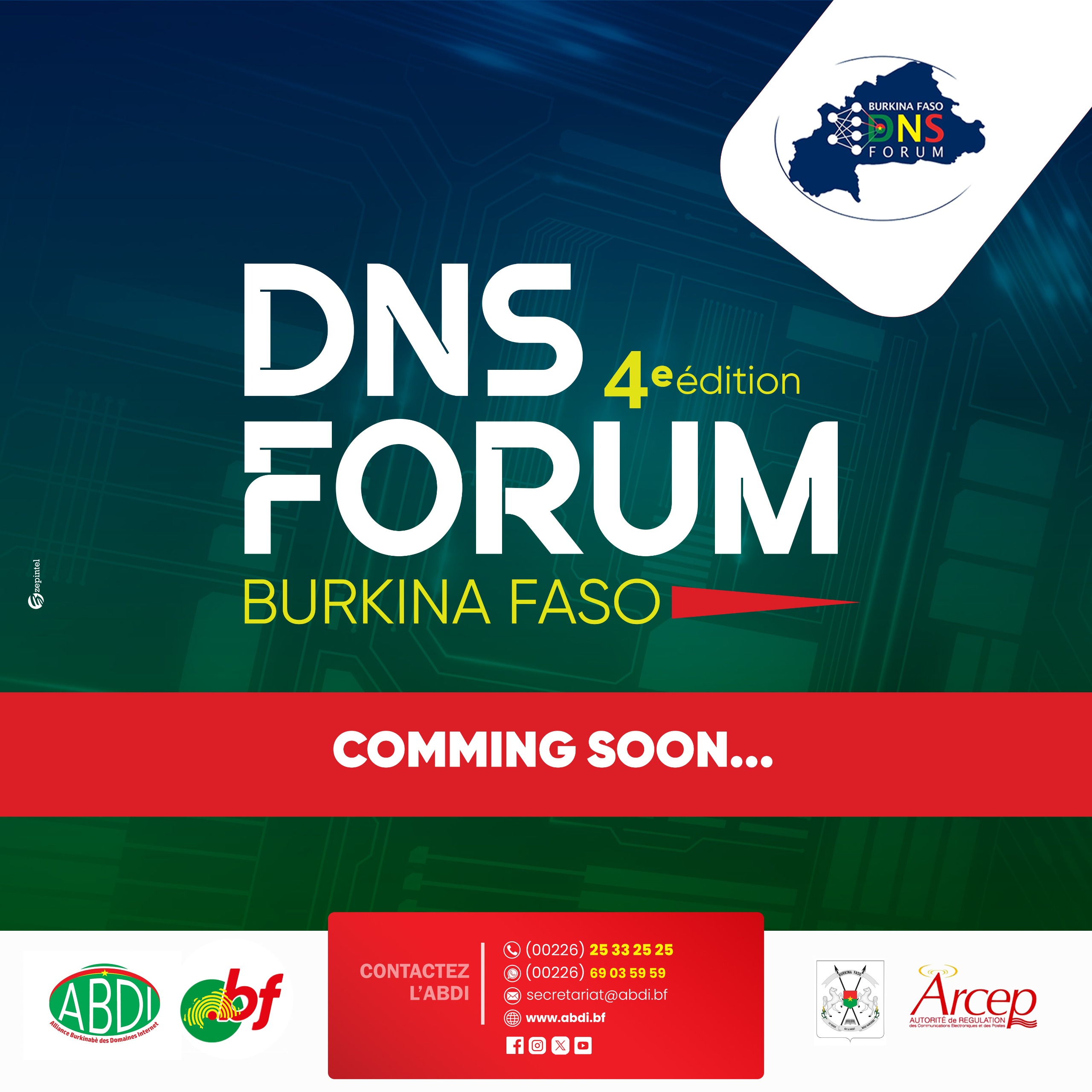 L’Alliance Burkinabè des Domaines Internet (ABDI) vous donne rendez-vous très bientôt pour la 4ᵉ édition du DNS Forum Burkina Faso !